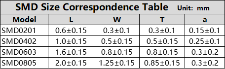 - Available in three specifications (0402/0603/0805)